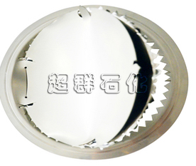 由反拱形金屬膜片和鋸齒壓桿構(gòu)成的組合式爆破片,凹面接觸介質(zhì)。爆破時,鋸齒壓桿失穩(wěn)使組合膜片翻轉(zhuǎn)被鋸齒沿周邊處剪開,泄放壓力,從而起到保護(hù)作用。